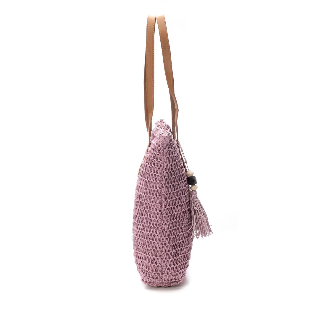 Bolso grande de hombro, marca Refresh, fabricado en rafia. Cierre mediante cremallera. Adorno decorativo al tono, diseñado en diferentes colores veraniegos. Un bolso bonito para acompañarte en tus días de verano. Medidas 35x38x15 cm. Este modelo ha obtenido el certificado vegano por la organización mundial PETA (Organización de los derechos de los animales).