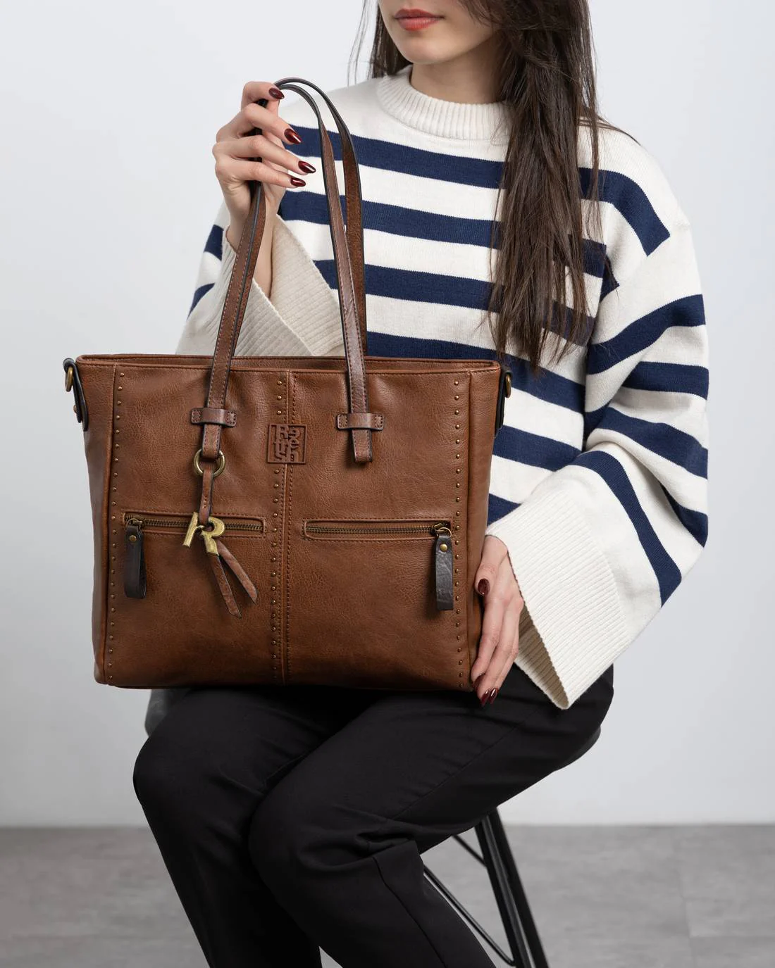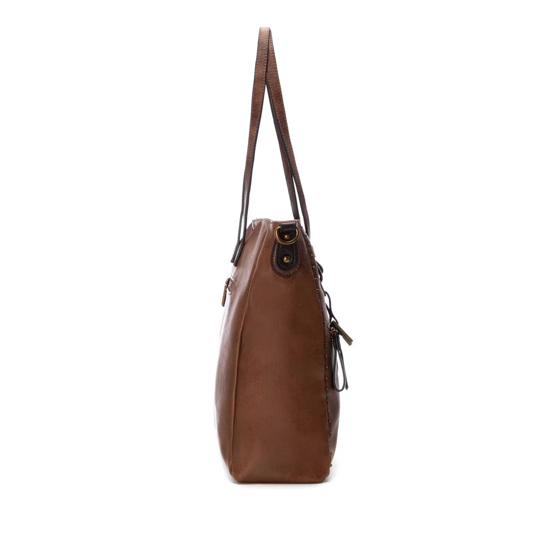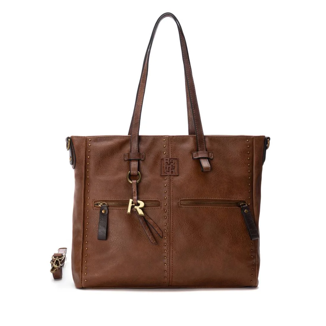 Bolso shopper de mujer de la marca Refresh, confeccionado en material que imita la piel, con cierre de cremallera para mayor seguridad. Su dise帽o incluye varios bolsillos para una organizaci贸n 贸ptima y un asa bandolera ajustable. Las tachas decorativas le a帽aden un toque moderno, perfecto para el dia a dia. Medidas: 31 x 36 x 11 cm. Este modelo ha obtenido el certificado vegano por la organizaci贸n mundial PETA (Organizaci贸n de los derechos de los animales).