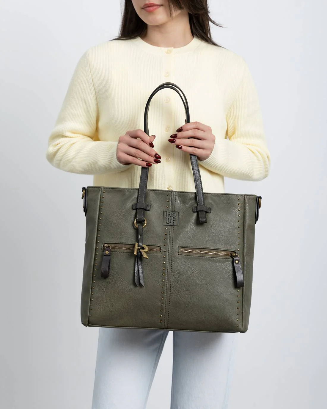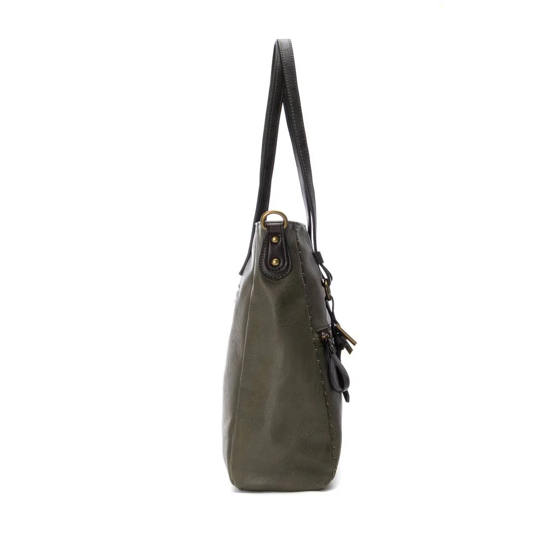 Bolso shopper de mujer de la marca Refresh, confeccionado en material que imita la piel, con cierre de cremallera para mayor seguridad. Su dise帽o incluye varios bolsillos para una organizaci贸n 贸ptima y un asa bandolera ajustable. Las tachas decorativas le a帽aden un toque moderno, perfecto para el dia a dia. Medidas: 31 x 36 x 11 cm. Este modelo ha obtenido el certificado vegano por la organizaci贸n mundial PETA (Organizaci贸n de los derechos de los animales).